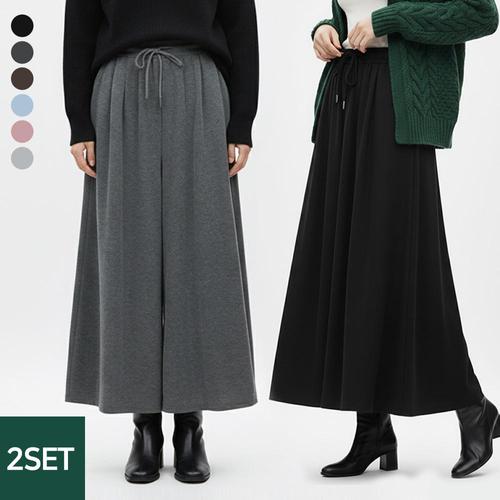 [샵앤][샵앤] [2종세트] 1+1 여성 허리밴딩 코코핀턱 와이드 통 치마 바지 무료배송