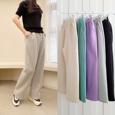 윤코코 국내생산 여성 여자 기모 바지 와이드 일자 트레이닝 밴딩 팬츠