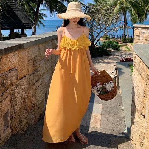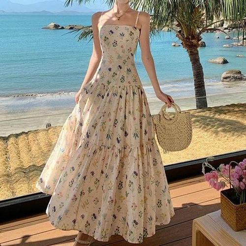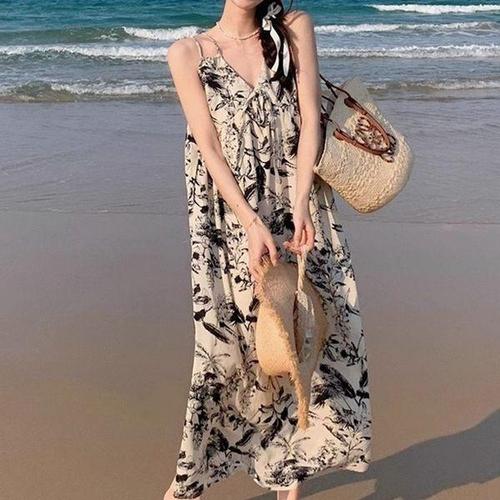 [에이치플러스몰]코코비치 여름 원피스 룩 나시 롱 휴양지 봄 여성 끈