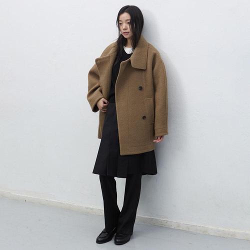 [제너럴아이디어]WOMAN 울 부클 하프 코트 [LIGHT KHAKI] / WBE4L10527