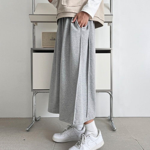 [옷자락]여자 아웃스티치 데일리룩 코튼 밴딩 플레어 롱스커트