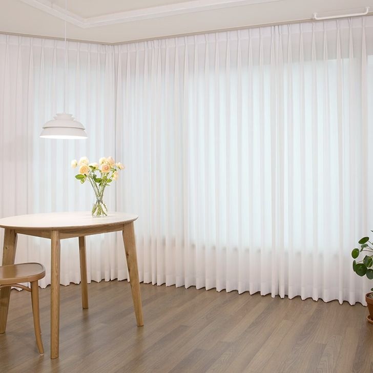 [5%쿠폰] 맞춤 차르르 도톰 쉬폰 화이트 나비주름 호텔식 커튼 맞춤제작