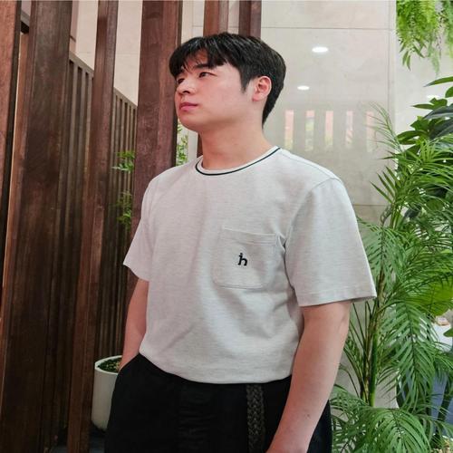 헤지스 남성 [쿨링원단] 오트밀 피케조직 반팔 크루넥 티셔츠 (HZTS5B506I1)