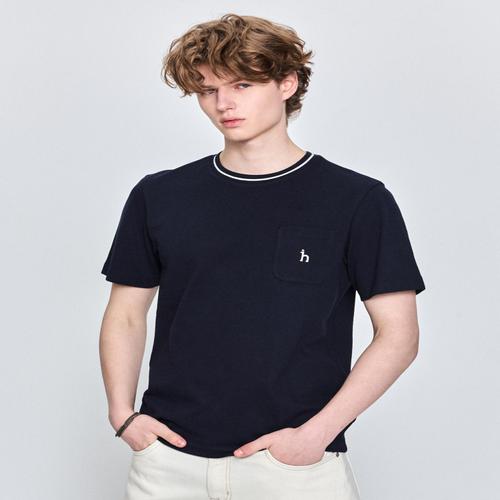 헤지스 남성 [쿨링원단] 네이비 피케조직 반팔 크루넥 티셔츠 (HZTS5B506N3)