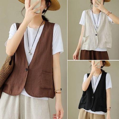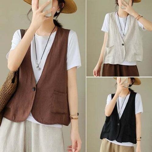 [모노무드]모노무드 여름 린넨 쿨링 베스트 여성용 루즈핏 아우터 조끼