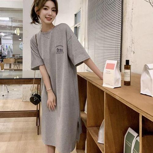 [에이치플러스몰]쿨 홈웨어 외출 데일리 앞뒤레터링 트임 반팔원피스
