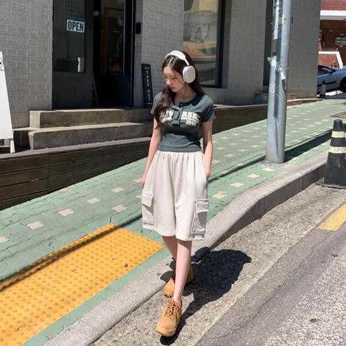 [옷자락]여성 여름 쿨 와이드핏 밴딩 카고 숏팬츠