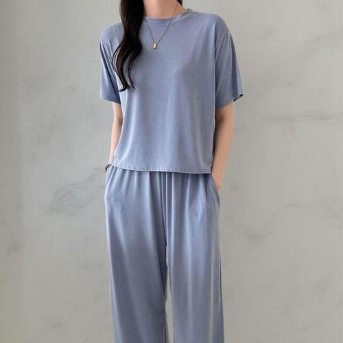 [옷자락]여자 찰랑핏 여름 쿨반팔티 와이드팬츠 세트