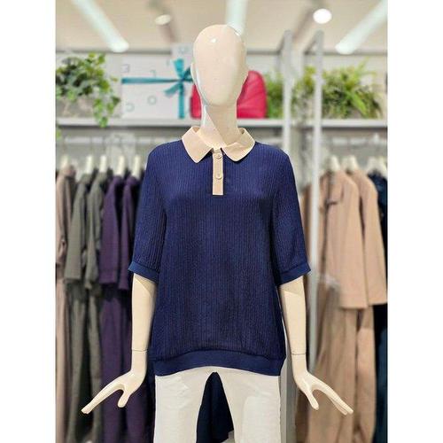 갤러리아_크로커다일레이디 배색 카라 블라우스 CLEMBL502