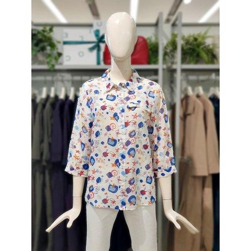 갤러리아_크로커다일레이디 프린트 린넨 블라우스 CLEMBL207