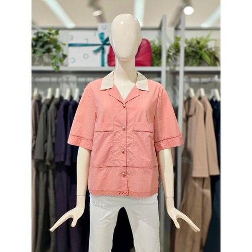 [하프클럽/크로커다일레이디]라이트 핑크 플라워 체인 포인트 블라우스 CLCS