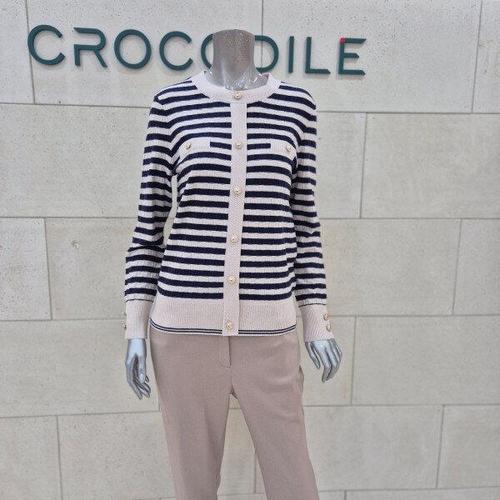 [크로커다일레이디]크로커다일레이디 컬러 배색 라인 니트 가디건 CLDWSW110_DG