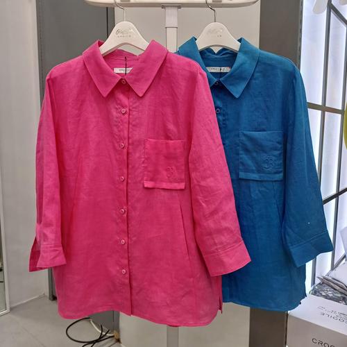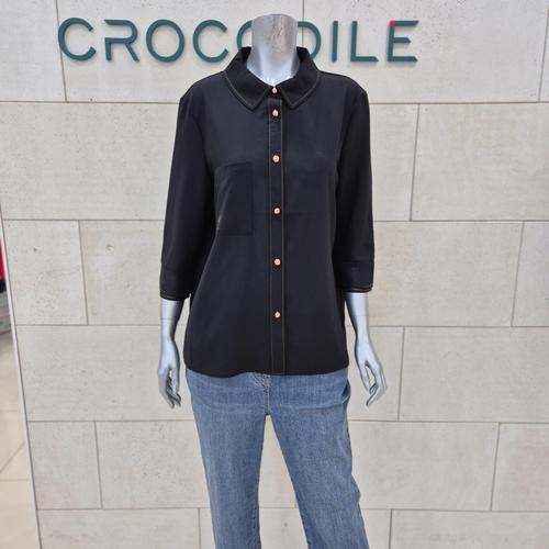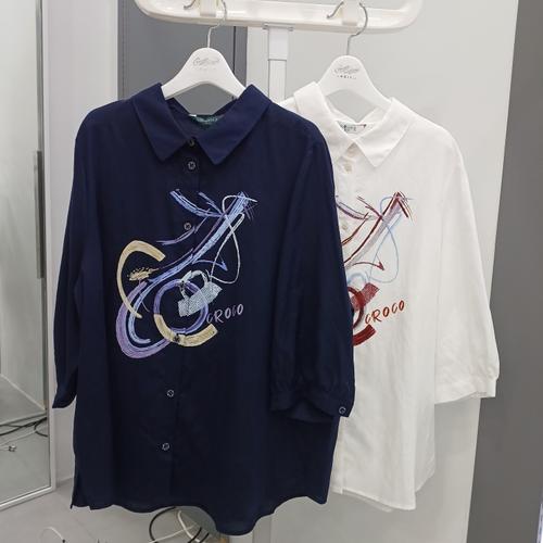[크로커다일레이디]로고 자수 포인트 셔켓 블라우스_OD