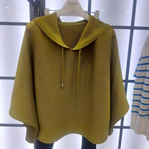 [크로커다일레이디]플리츠 후드 블라우스_OD