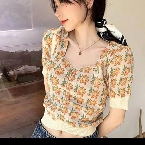 [디어로우]디크로 와플 니트 크롭 티셔츠