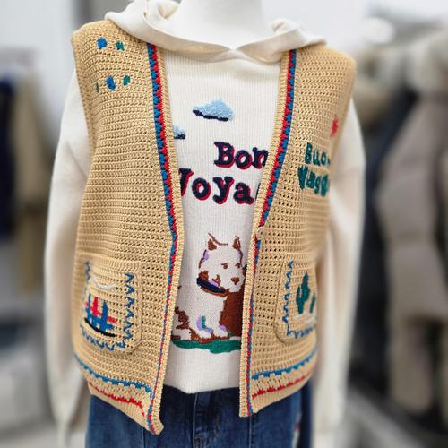 [베네통]배색 자수 크로셰 니트 베스트 BAKV50531_IC