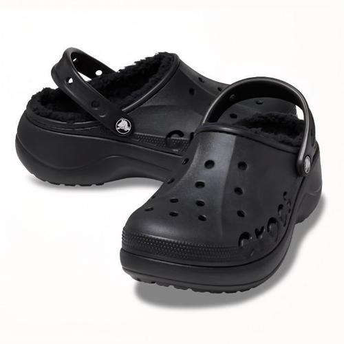 크록스 바야 라인드 플랫폼 클로그 여성 겨울 방한 슬리퍼 블랙 208708-001