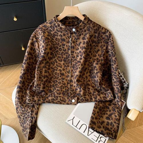 슈팅스타 / 호피 레오파드 집업 바람막이 크롭 스웨이드 자켓