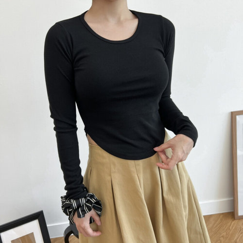 [옷자락]여자 옆트임 슬림 긴팔쫄티 크롭 겨울면티 티셔츠