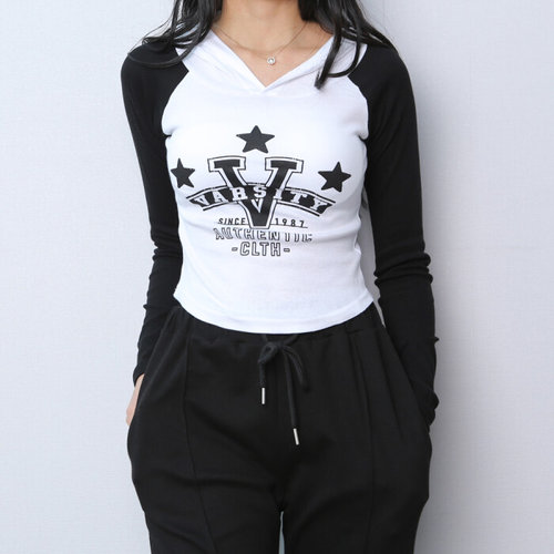 파라노말샵 / 바시티 배색 나그랑 쫄 크롭 후드티(파라노말샵)