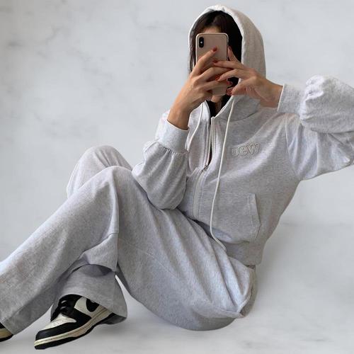 [옷자락]여성 가을 트레이닝 세트 크롭 후드 집업 와이드 팬츠