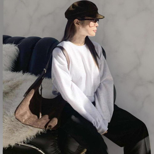 [유미르] 데일리룩 캐주얼 여성 오버핏 세미 크롭 맨투맨 티셔츠