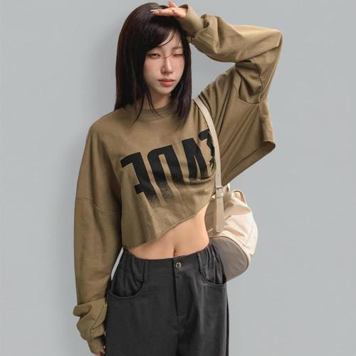 [유씨엘에이]여성 크롭 라글란 소매 테잎 맨투맨[UA9LT51]
