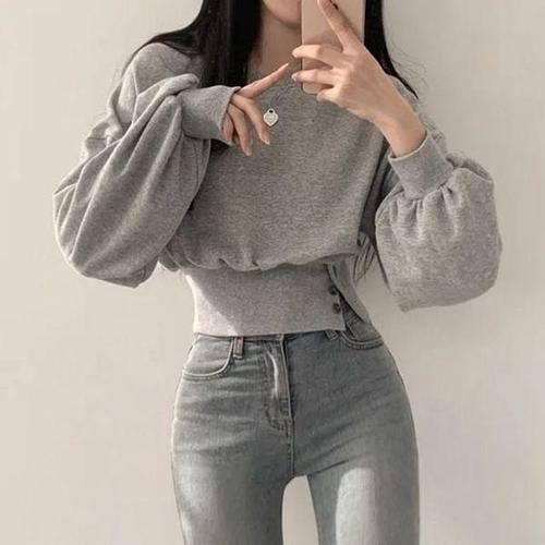 옷자락 / 여성 크롭 기모 기본 맨투맨 티셔츠