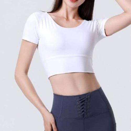 [옷자락]여성용 스포츠용 크롭 반팔 라운드넥 트레이닝 티
