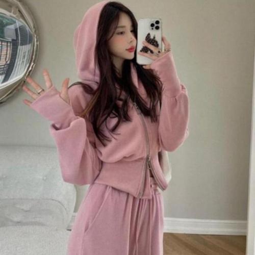 AOKADA 여자 슬림핏 트레이닝 패션 크롭 집업 맨투맨 코트 투피스