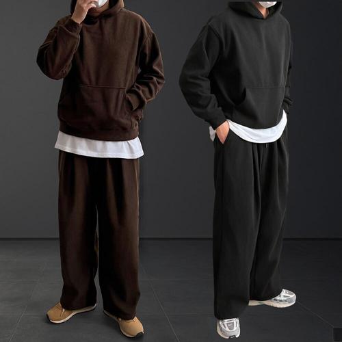 [노멀쉐이크]크라운 두꺼운 기모 골덴 후드 트레이닝세트 (3color) 커플 크롭 와이드 코듀로이 상하의 세트