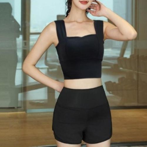 여성 요가 스포츠 크롭탑 숏바지 트레이닝 세트