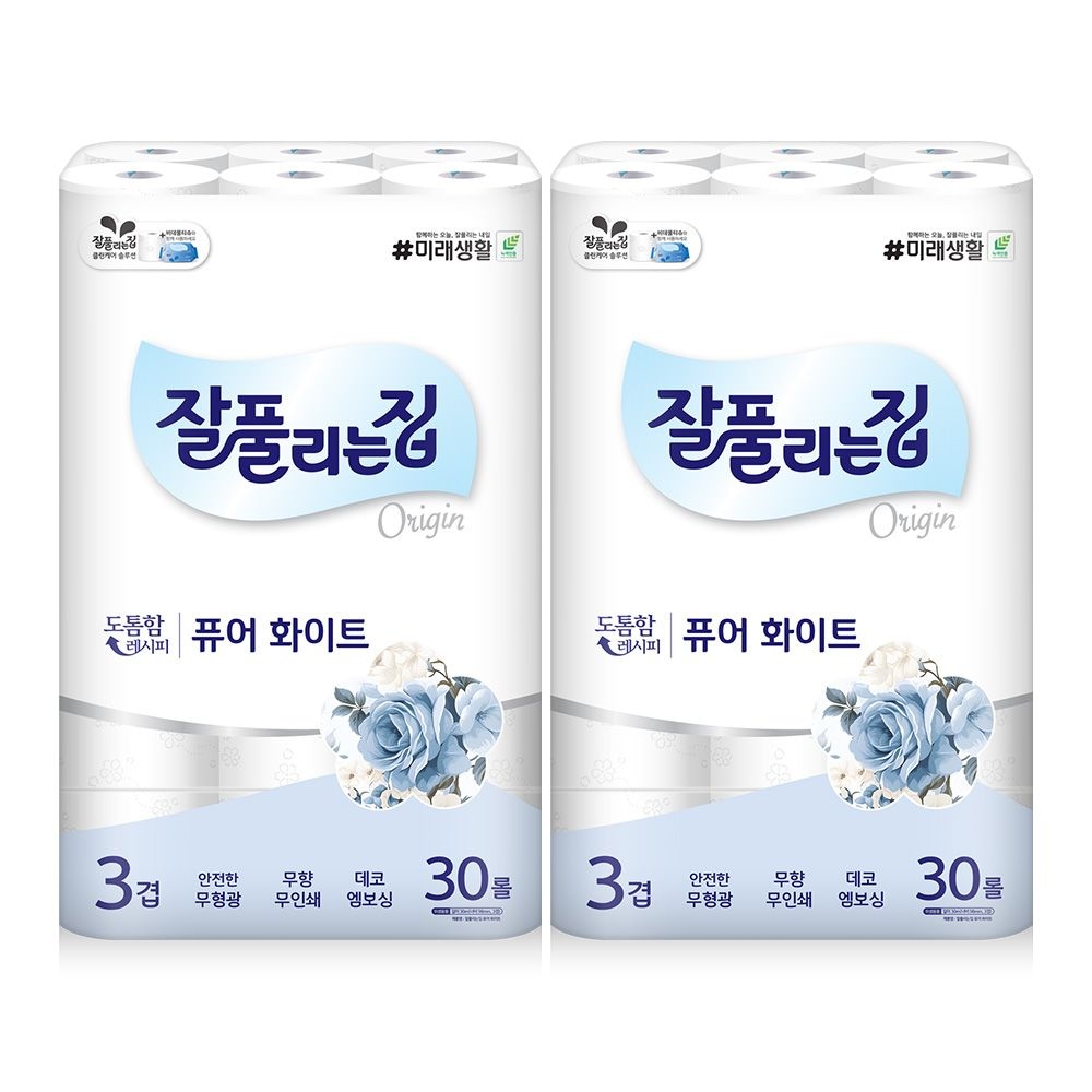 퓨어화이트 3겹 화장지 30M x 30롤 x 2팩
