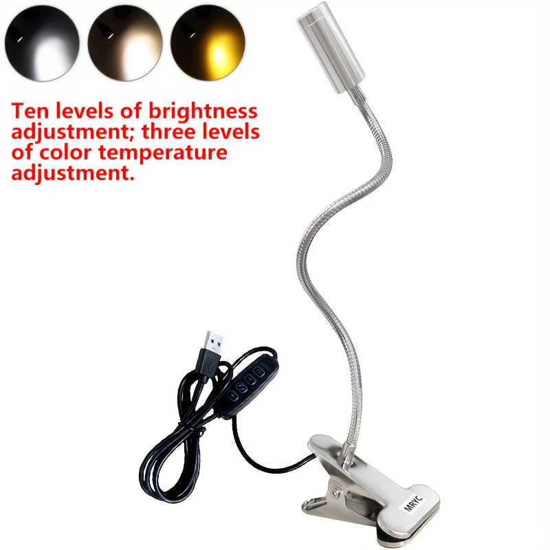TEMU EMRYC 3W USB 전원 유연한 고스넥 책상등, 조명 밝기 조절 가능, 튼튼한 금속 베이스 - 침실, 사무실, 거실용 세련된 모던 리딩 램프, 디자인, 클램프 마운트 조명, 고품질 독서광, 현대적 인테리어 조명, 책 애호가를 위한 침대 옆 조명