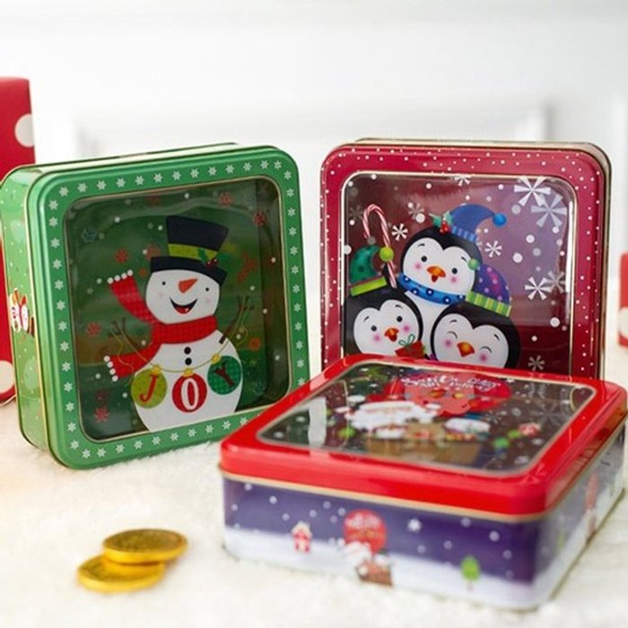 엄지척 크리스마스 투명 정사각 틴박스 3type A(팽귄 틴박스)