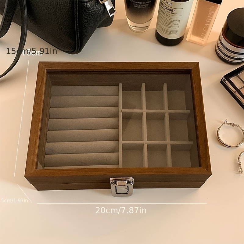 TEMU 빈티지 블랙 월넛 주얼리 정리함 잠금 클라스프 포함 - 반지, 팔찌, 귀걸이 및 목걸이를 위한 멀티 컴파트먼트 디스플레이, 인조 스웨이드 안감, 크리스마스, 추수감사절, 어머니날 선물에 완벽한 주얼리 박스|링귀걸이