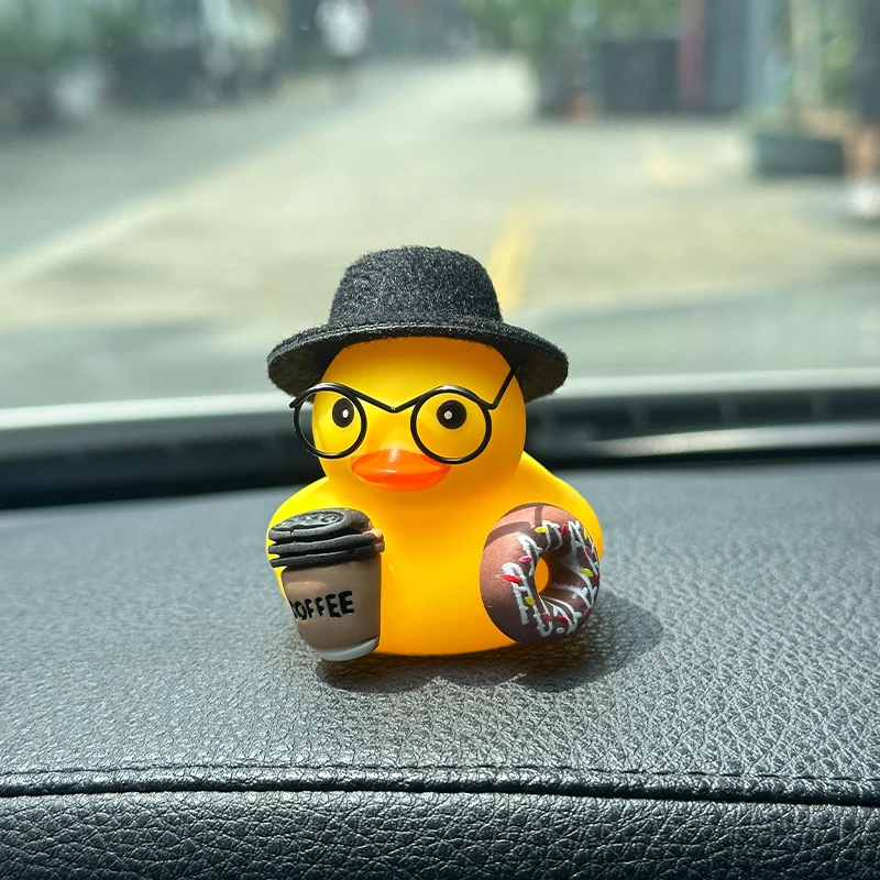 커피 자동차 고무 오리, 커피 애호가 오리 자동차 대시 보드 장식을위한 노란색 오리 장식 대시 보드