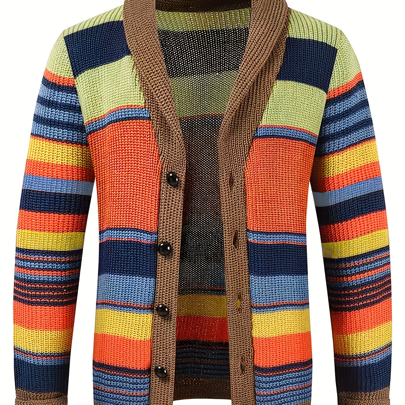 TEMU 남성 캐주얼 스포츠 스웨터, 컬러 블록 디자인 맨드린 칼라 싱글 브레스트 버튼, 헴 엣지 루즈핏, 클리어 니트 텍스처, 레트로 트렌디 스타일