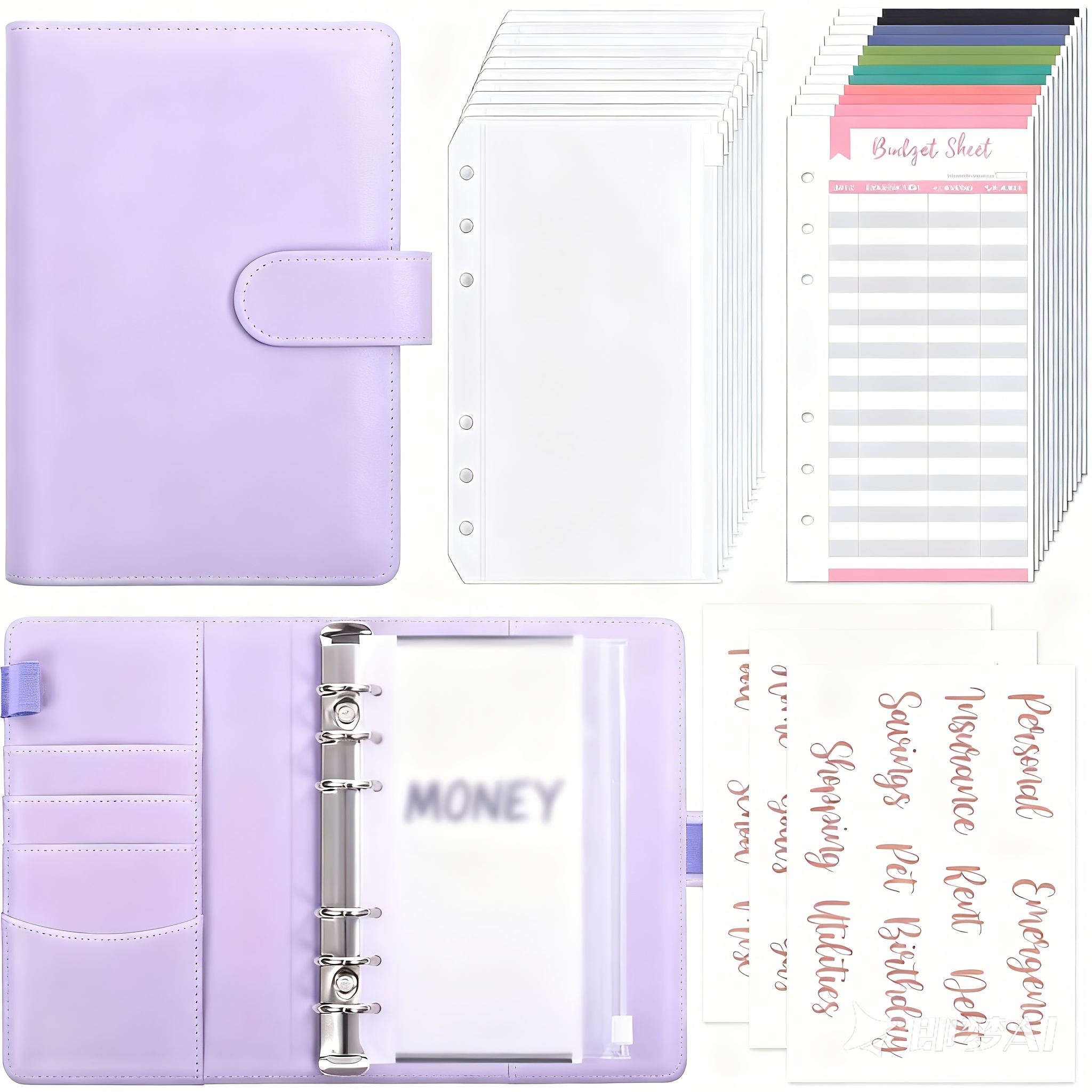 TEMU 현금 봉투가 있는 A6 예산 바인더 - 블랙 머니 오거나이저, 로즈 골드 스티커, 성인용 일일 사무용품
