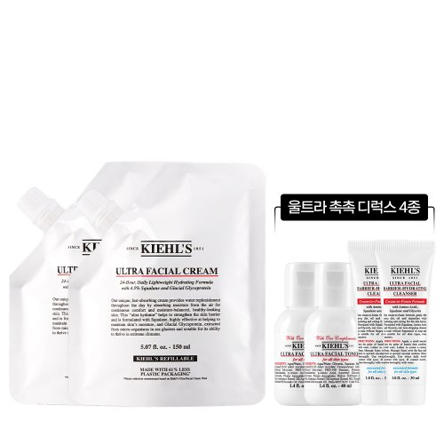 키엘 [10R] 울트라 훼이셜 크림 리필 파우치 150ml 듀오 세트 (+울트라 촉촉 디럭스 4종)