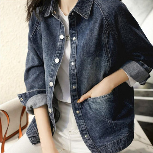 [유아몽드]오버핏 포켓 데님 점퍼 빈티지 똑딱이 셔츠 청자켓