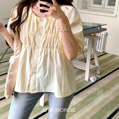[유아몽드]러블리 플리 핀턱 봄 여름 반팔 블라우스 라운드넥 퍼