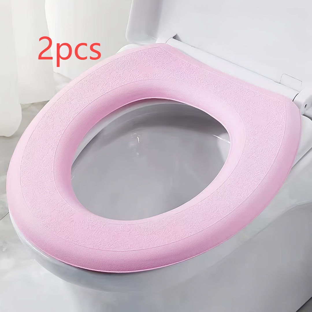TEMU 방수 합성 고무 변기 시트 커버 2개 - 재사용 가능 및 세척 가능한 끈끈이 패드, 욕실에 편안함, 일반 변기에 적합 - 미끄럼 방지 표면, 14세 이상 성인 및 청소년에게 적합.|변기커버
