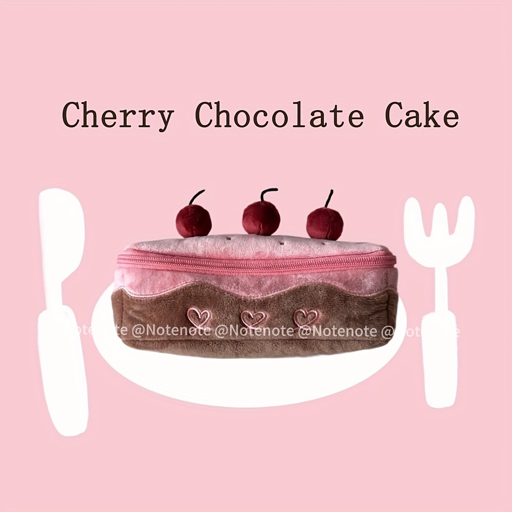 TEMU 귀여운 체리 초콜릿 케이크 디자인 필통 - 대용량 30펜 수납, 내구성 강한 펑션 방지 소재, 핑크 & 버건디 컬러 옵션, 메이크업 파우치 및 보관함 (청소년용)