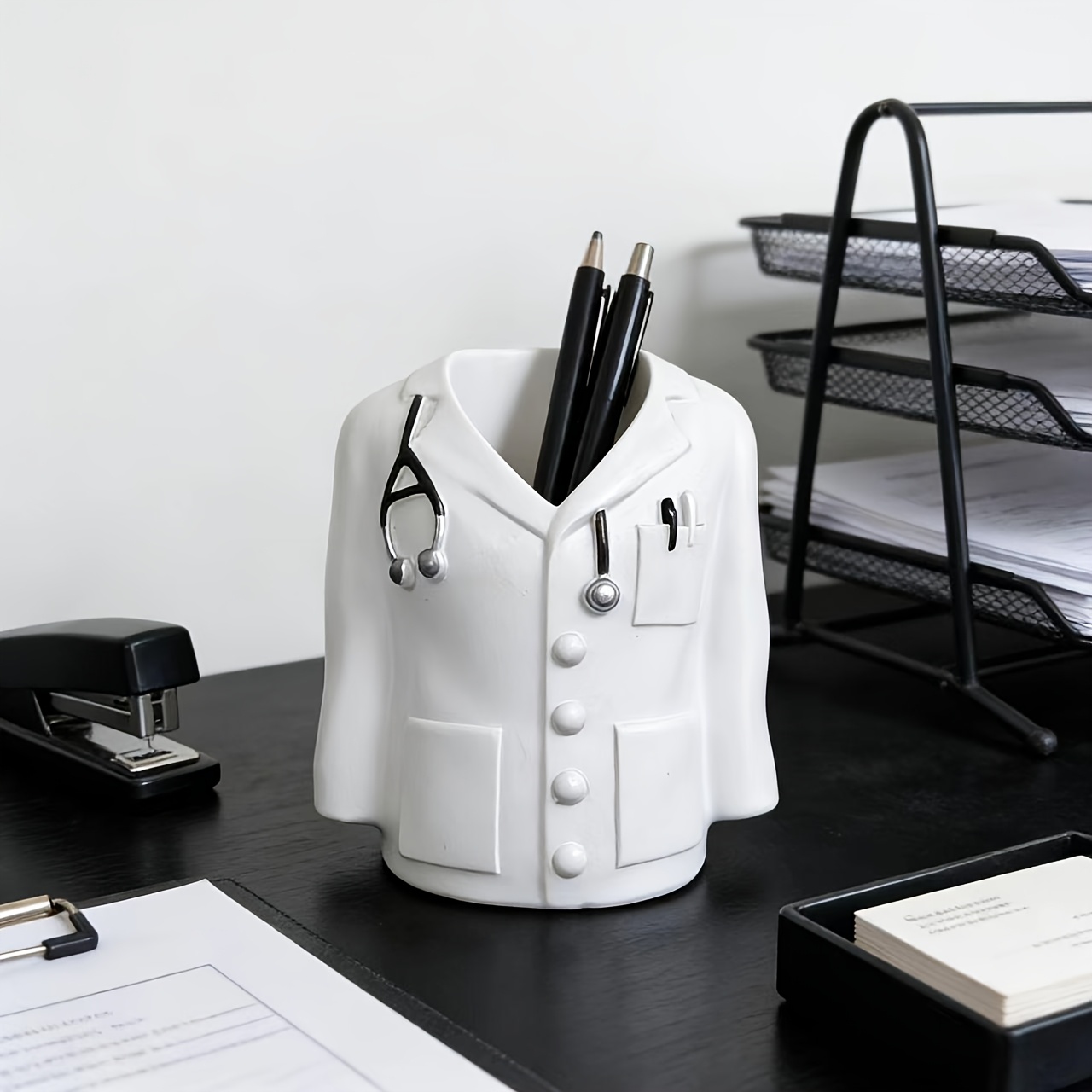 TEMU 1개 창의적인 의사 가운 모양 펜 홀더, 의료 테마 데스크 정리함, 홈 & 오피스 책상 장식용 펜 컵