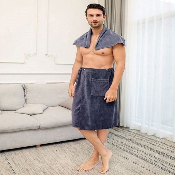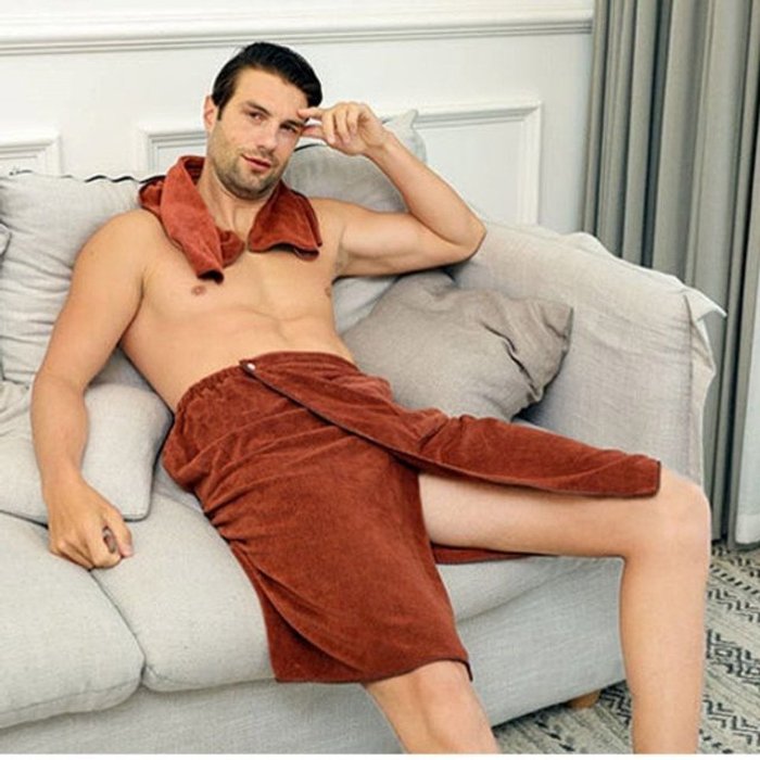 엄지척 남성 스마트한 목욕 샤워 스커트 치마 가운 타월
