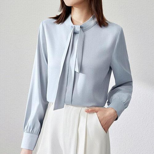 DUOMIHAN여성 배색 카라 타이넥 롱슬리브 셔츠 블라우스 WZS60313
