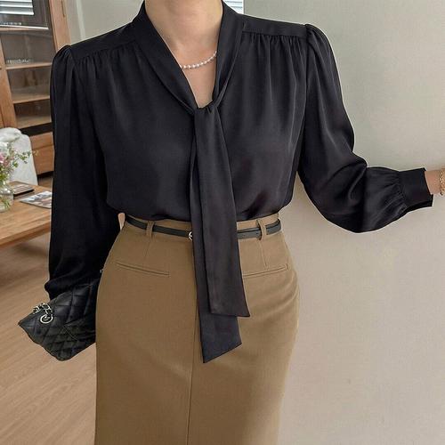 [위시드]셔링 타이넥 긴팔 블라우스 (WIDABL007)