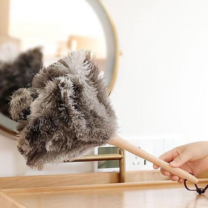 프리미엄 원목 양모/타조깃털 먼지털이개