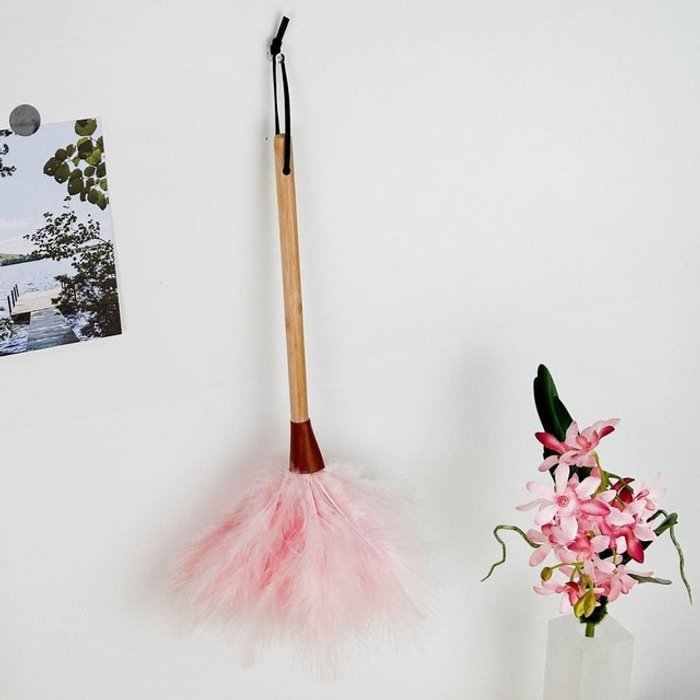 타조털이개 천연 타조털 베이지톤 우드 손잡이 청소도구 인테리어 효과